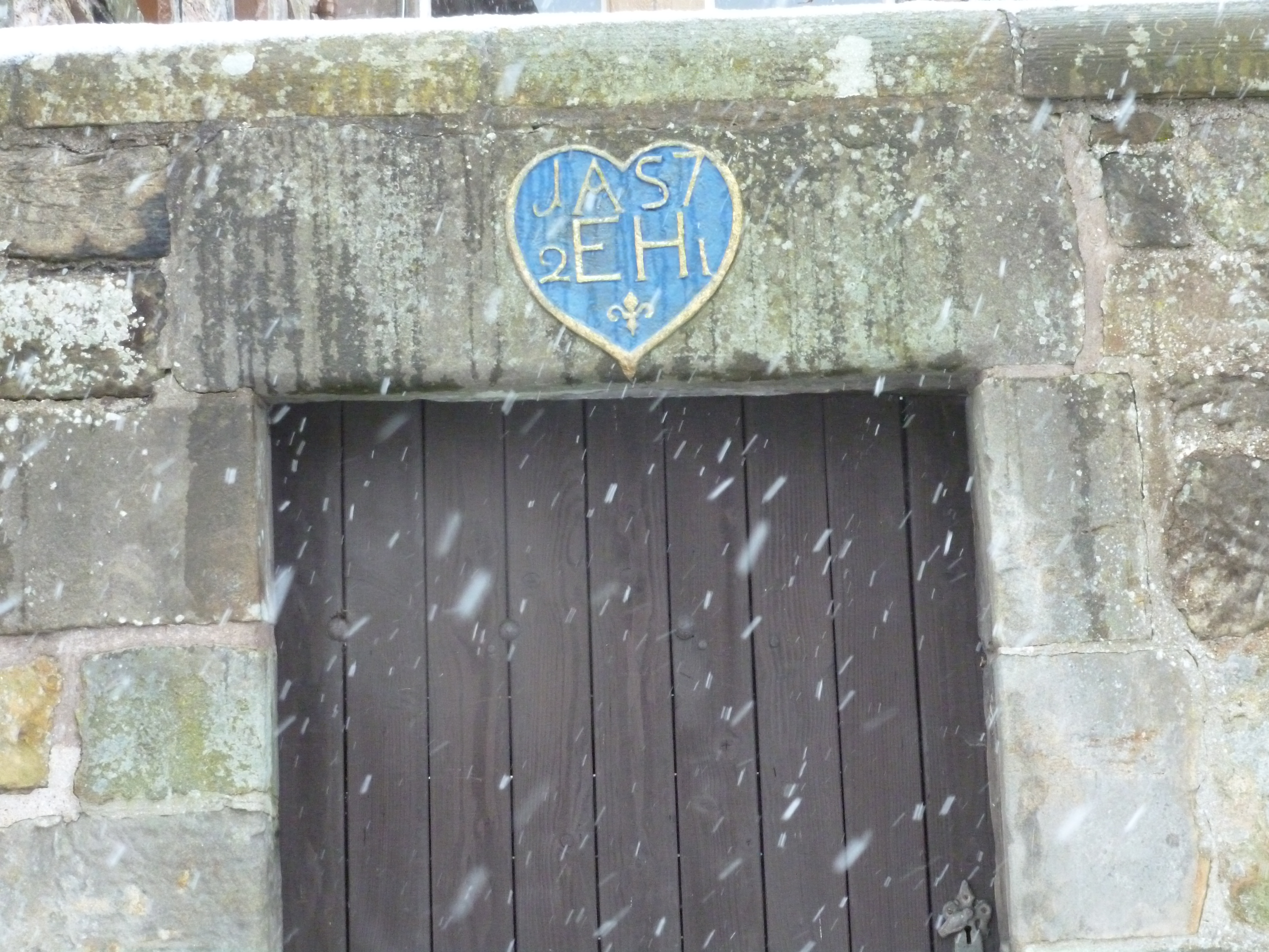 A carved slab, now and then – linked hearts, initials,