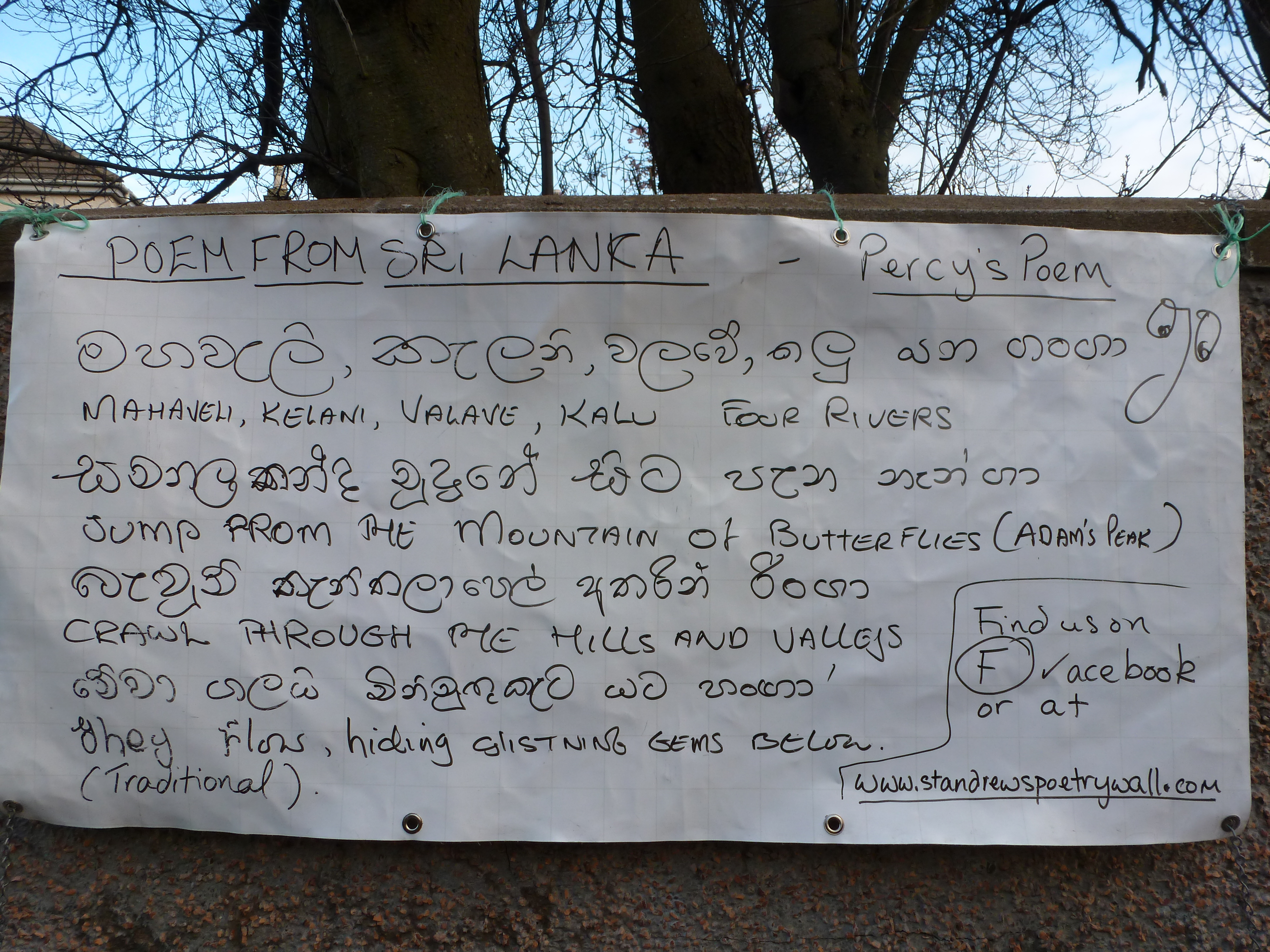 No text today as I can’t write in Singhalese and not very good at posting photos from Wikipedia either! Wish I had been able to have Percy speak it for us – it is very musical.