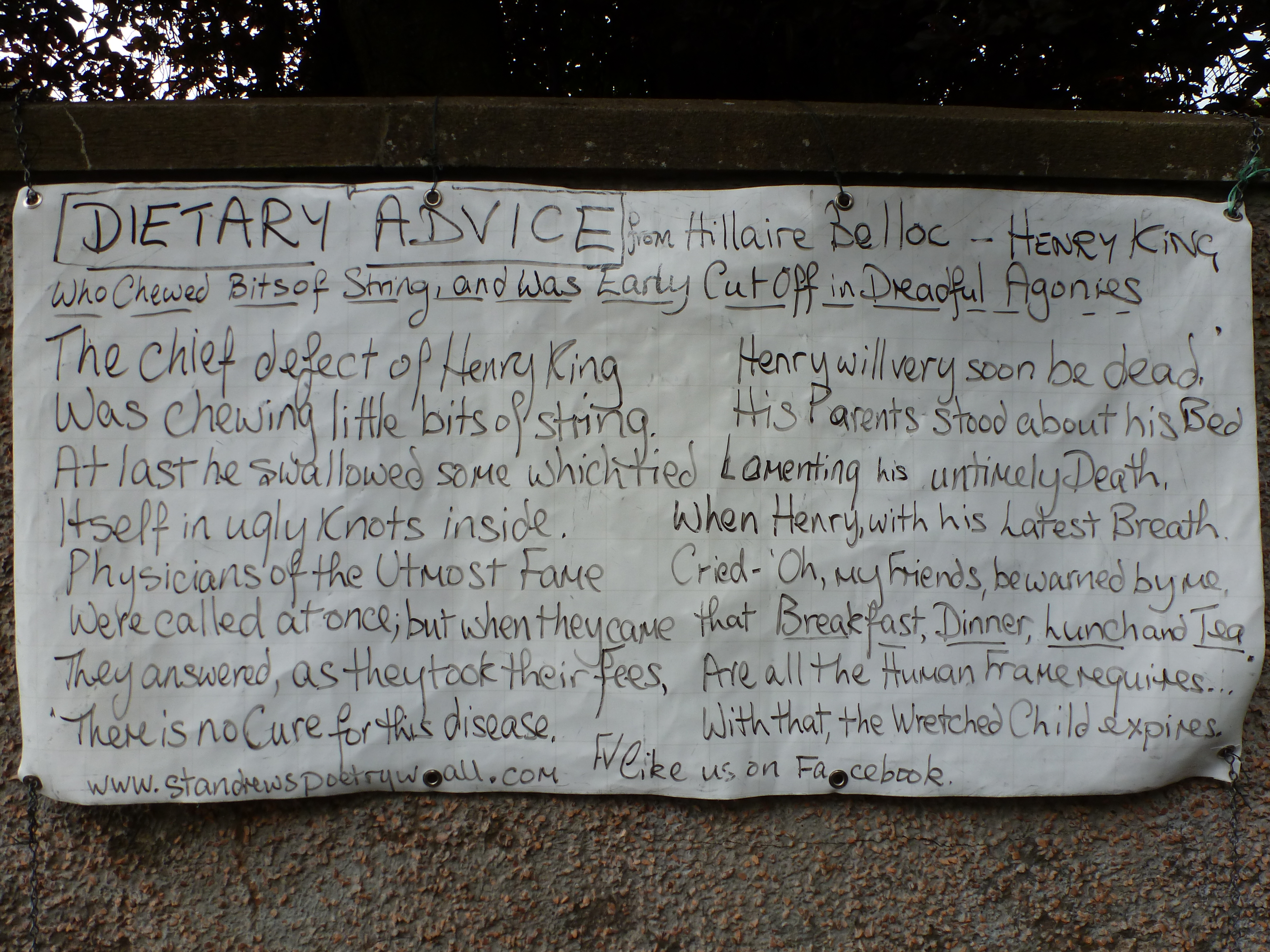 The Poetry Wall is mended at last. This advice is for those of us always on a diet.
